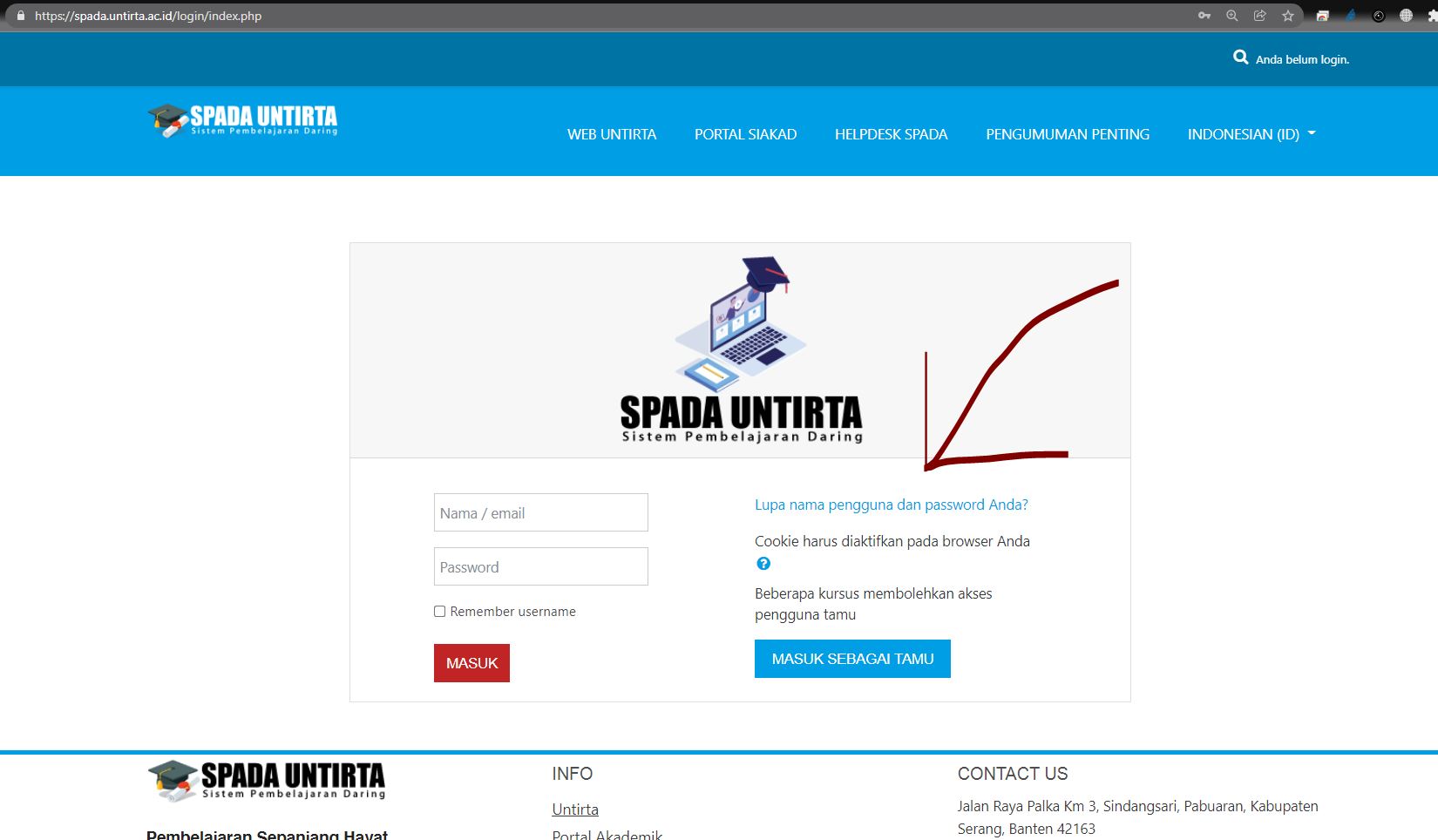 Pertama, buka halaman login di situs Spada Untirta. Di sana, kamu akan menemukan kotak untuk username dan password.